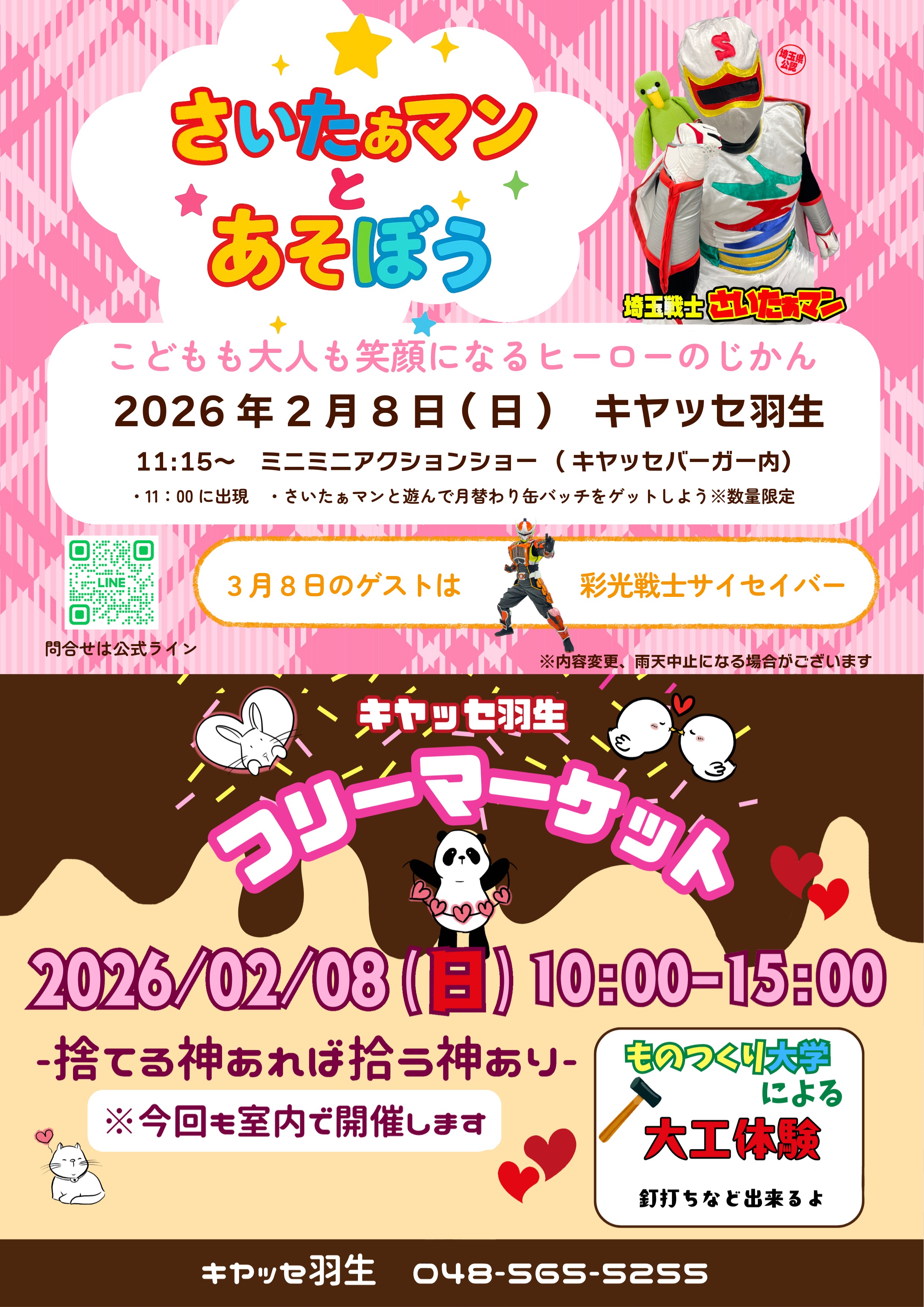 各地のイベントに呼ばれヒーローショーを行い、たくさんの子ども達と触れ合っています。ショッピングモールイベント、自治体お祭り、施設、学校等どんな場所でもさいたぁマンショーができますので、是非あなたのイベントでもさいたぁマンを呼んでください!!